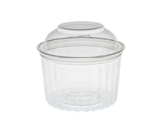 This Show Bowl is an elegant bowl for displaying appealing and colourful food, such as sweets, desserts, salads and other delicacies. Each size is available with a flat lid or domed lid. Made from recyclable PET, recycling symbol #1.