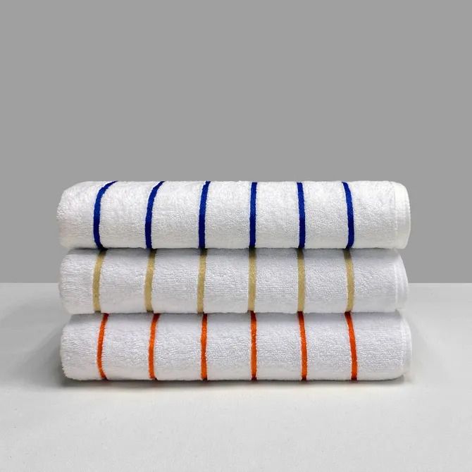 Bright pinstriped towels perfect for the pool, beach, spa or gym. Crafted with 100% combed moisture absorbent cotton in 500gsm, built to stay plush and comfortable even after many uses.