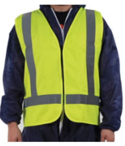 Yellow Hi Visibility safety work vests made of lightweight polyester, that is strong and easily washable. With reflective tape as prescribed by AS/ NZS 4602.1:2011 safety standards. Featuring a strong zip front and long tail for added visibility. Available in a wide range of sizes.