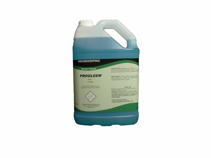 Progleem is an effective ammoniated streak free window cleaner. Simply spray on and wipe off glass, mirrors, stainless steel and chrome